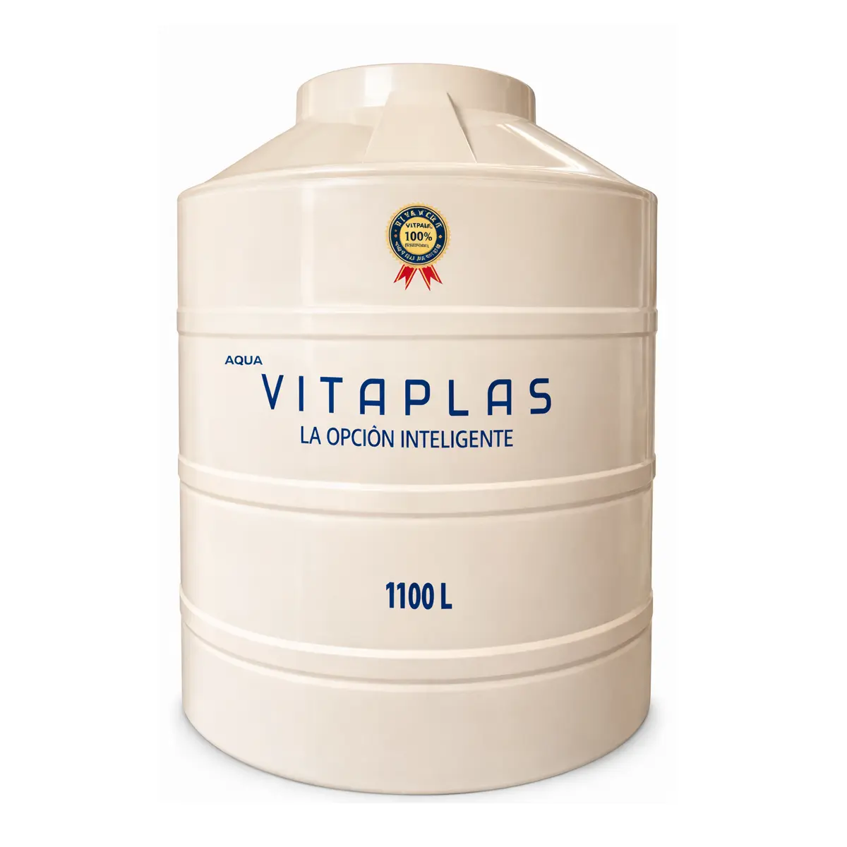 Tinaco Vitaplas Plus bicapa de 1100 litros color beige. Ideal para almacenamiento de agua potable en casas y pequeños comercios. Resistente, duradero y fácil de instalar.